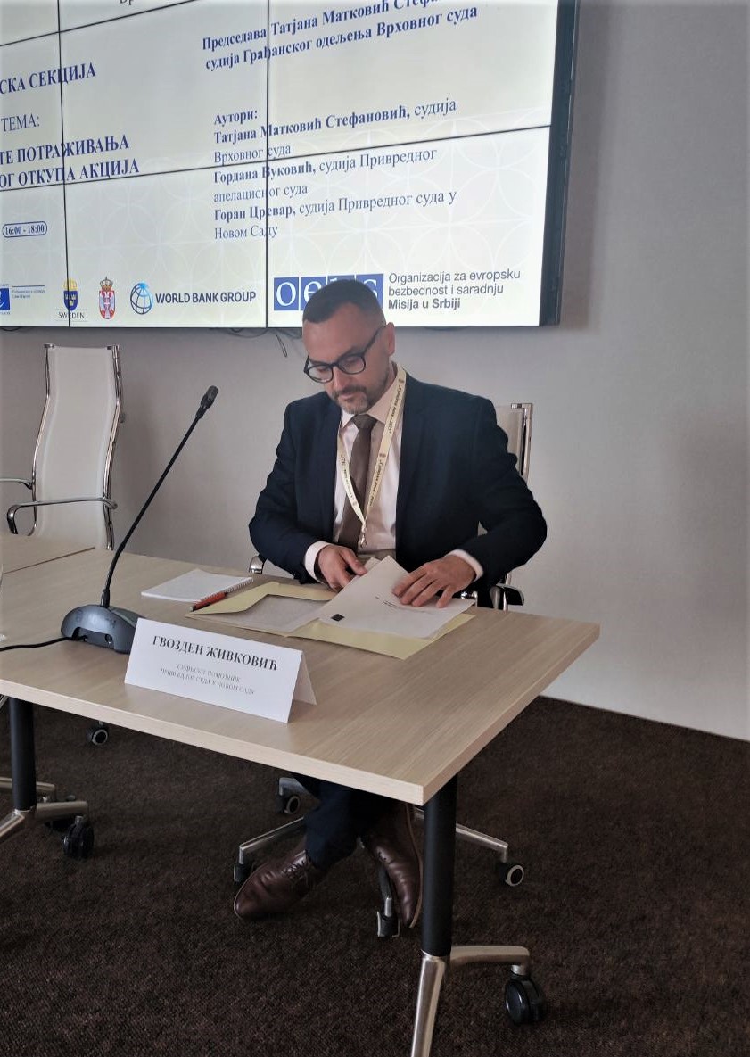 Дана 22. маја 2025. године, на Грађанској секцији којом је председавала Татјана Матковић Стефановић, судија Врховног суда, реферат на тему „Рок наплате потраживања из принудног откупа акција“ је излагао Гвозден Живковић, судијски помоћник Привредног суда у Новом Саду, који је реферат писао у коауторству са Гораном Цреваром, судијом Привредног суда у Новом Саду. На исту тему реферате су излагали и Татјана Матковић Стефановић, судија Врховног суда, и Гордана Вуковић, судија Привредног апелационог суда.